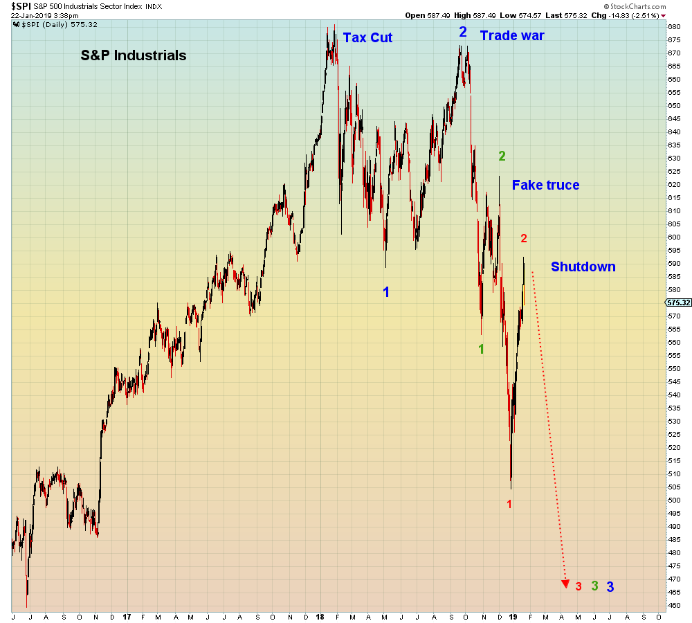 2. Confidence with regard to global economic growth – This view is unjustified based on high frequency economic data in the U.S. and by weakening growth in Europe and China. (See the quote from IMF’s Lagarde above) Even if interest rates are not increased, I don’t see it as a factor that will even stabilize U.S. growth. My baseline expectation is for +1% to +2% first half U.S. growth and a negative print in this year’s second half based on restrictive Fed policy (Quantitative Tightening), untenable debt loads, the widening national debt, political turmoil and a lapping of fiscal stimulus. The chances of a rate cut are increasing for this year (See my 15 Surprises for 2019).