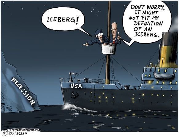 The point of it is that Biden and his pals are changing the generally accepted definition of “Recession” so that we won’t be in a “recession” and they won’t look bad in the midterms.