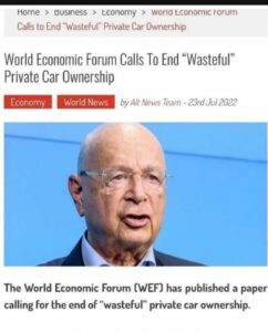 Schwab ..having a old age temper tantrums again? Maybe he needs some meds. But if he insisted start with his and his friends and family’s car, and any private boats and jets they might have. Climate change and the greater good. Also let’s limit square foot of housing per household. Cant have someone like him powering, cooling and heating a oversized house using up all that energy just for himself. No pesticides or nitrogen fertilizer on his yard. In fact it’s a waist of water for one person. It’s wasteful. I’d say he should add more bugs to his menu instead of waisting a whole animal just for him but geo engineering is killing them off two so maybe Gates can make him some fake meat.