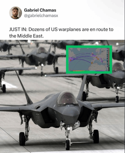 BREAKING: Dozens of US warplanes are en route to the Middle East.
