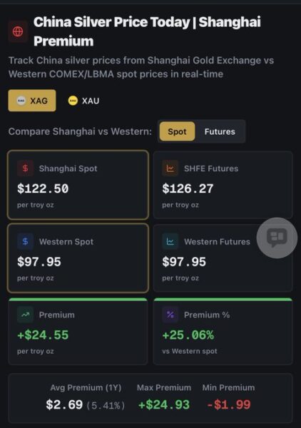 In Shanghai silver is trading with a 25% premium, due to heavy paper selling in the West